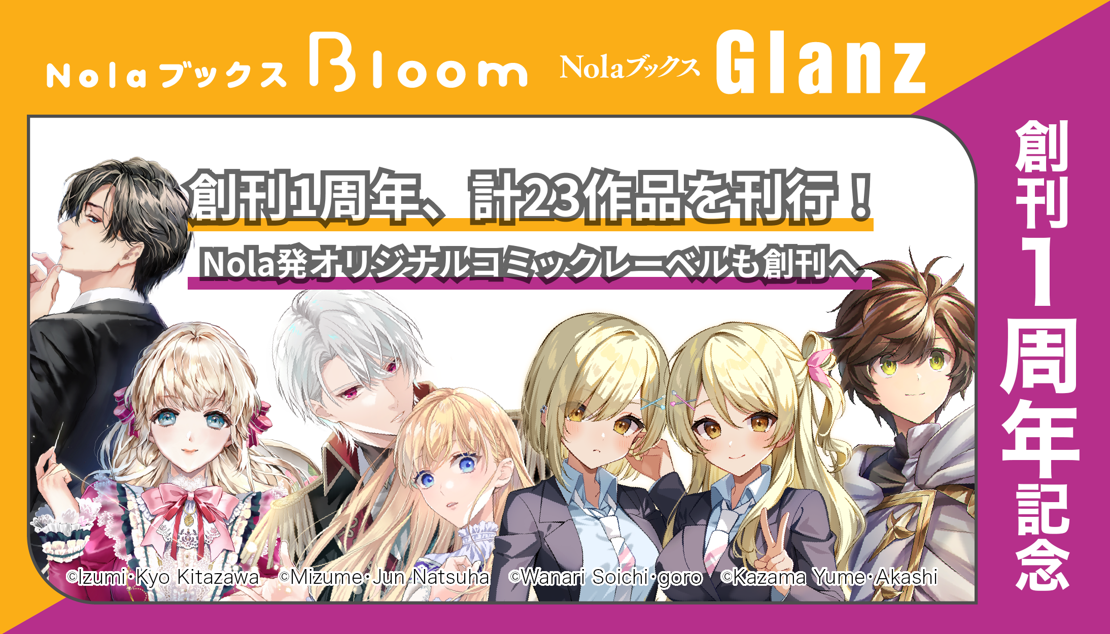 indentは創業以来、創作プラットフォーム「Nola」を通じて、作家の皆さまが快適に創作できる環境の構築に邁進しておりましたが、「Nola」で生まれた250万を超える作品の商業化機会を広げるため、2025年3月にオリジナル小説レーベル「NolaブックスGlanz」および「NolaブックスBloom」を創刊いたしました。以降、NolaやNolaノベル等で生まれた物語が商業作品として羽ばたく循環を育み続け、創刊1周年を迎えた現在、両レーベル合わせて計23作品を刊行しています。